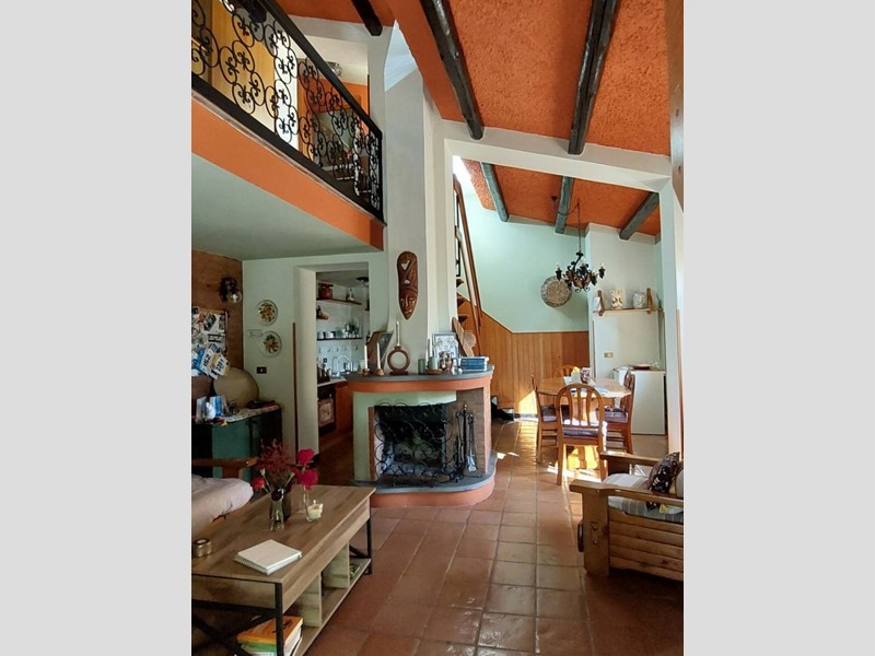 La seconda soluzione è di circa 70 mq con portico, si presenta in un unico ambiente living con travi in legno a vista e con ottime rifiniture, composta da ampio soggiorno con camino, cucinotto, camera da letto e bagno.