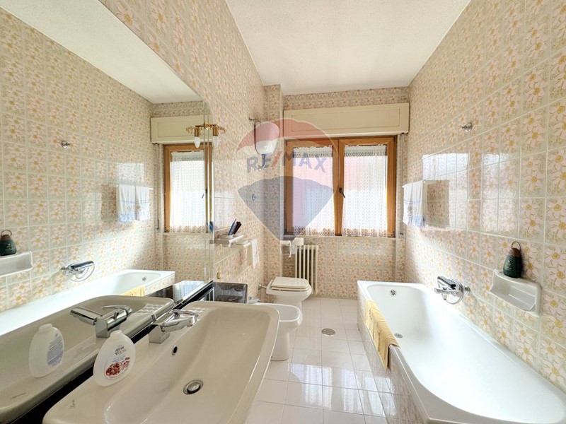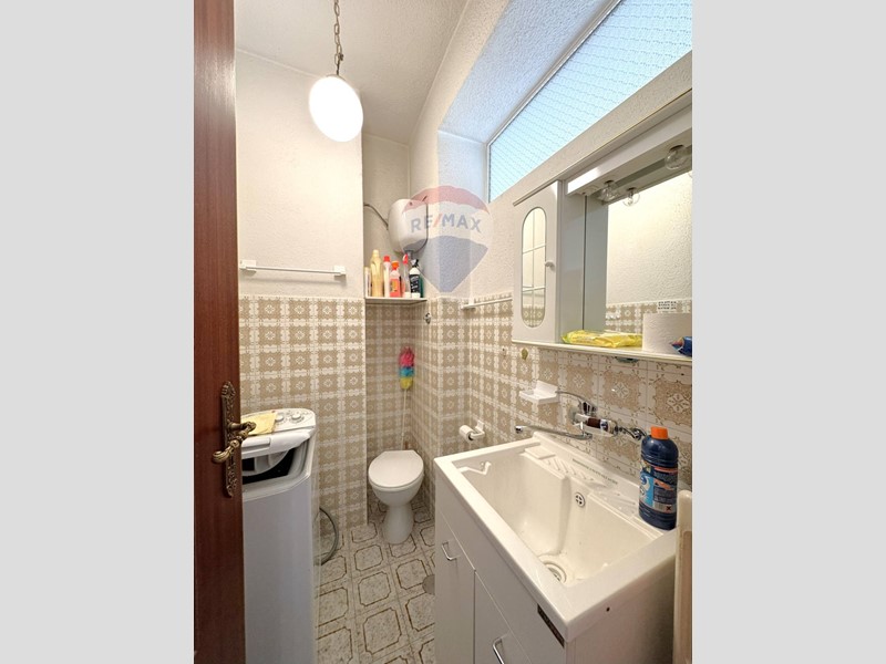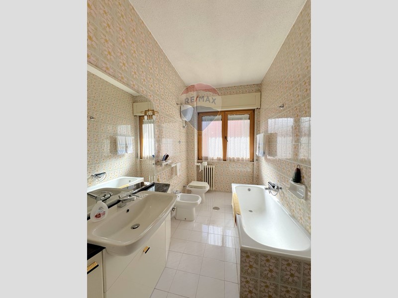 Piano ammezzato: primo appartamento di 180 mq composto da ingresso, salotto con due punti luce e accesso in giardino interno, cucina con finestra, primo servizio con finestra, prima camera con finestra, secondo servizio senza finestra, seconda camera con balcone, terza camera con finestra.
