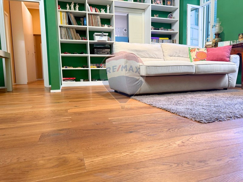 Labitazione, di circa 135 mq, si distingue per leleganza degli ambienti e la grande luminosità, garantita dalla doppia esposizione: da un lato sulla suggestiva corte alberata interna e dallaltro su Via Trento.