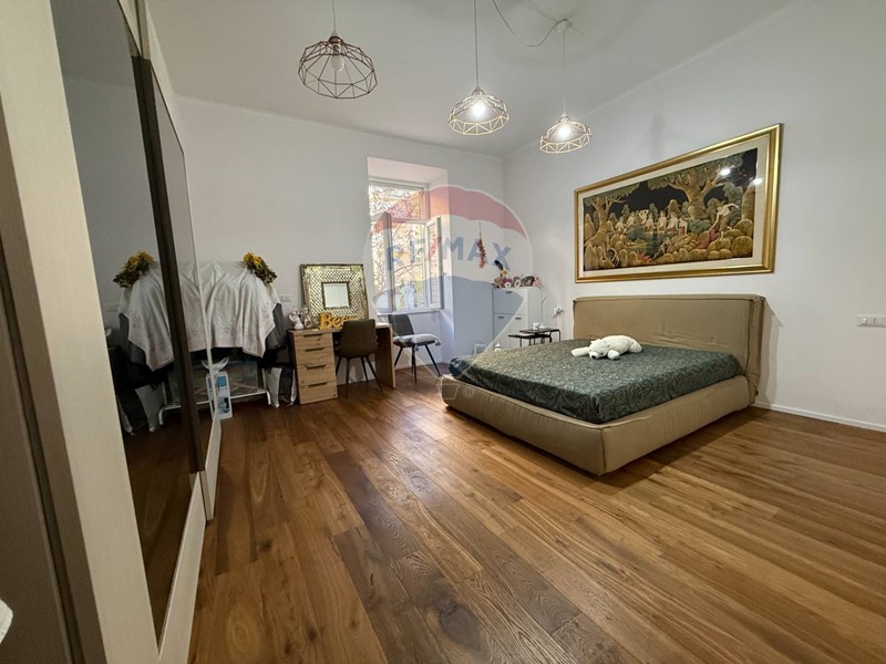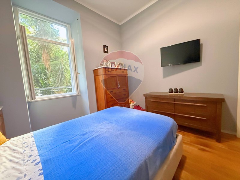 La zona notte, ben separata, ospita due camere da letto, di cui una padronale di generose dimensioni, con affaccio sulla via principale, e una cameretta tranquilla e riservata con vista sul verde.