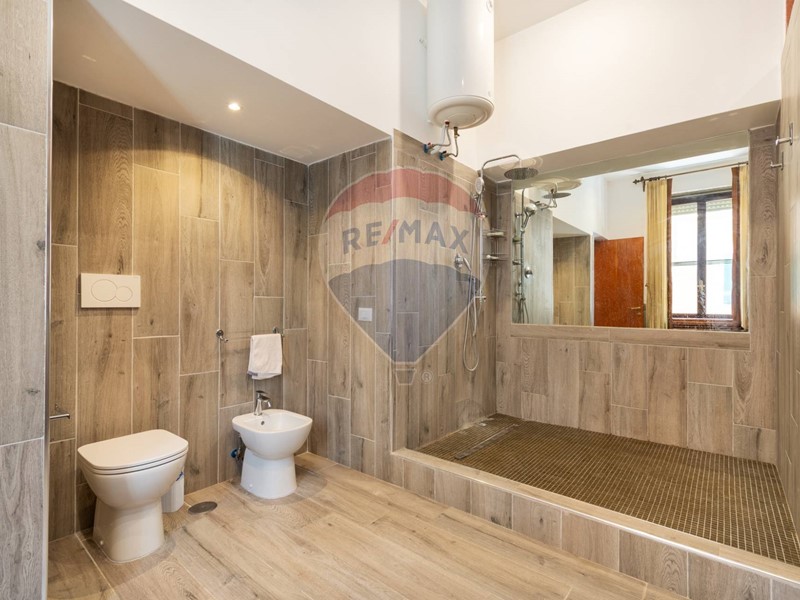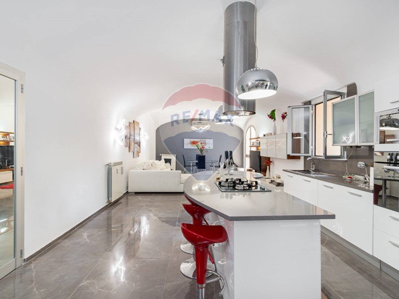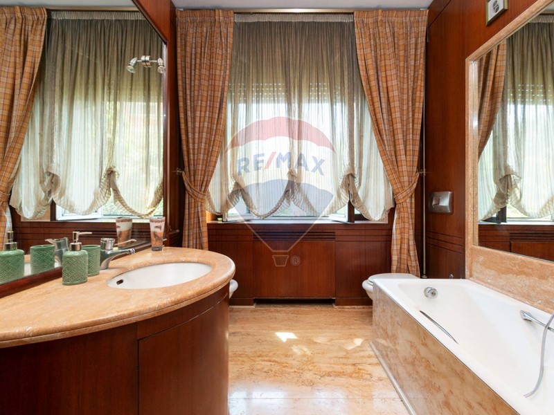 Linterno dellabitazione, caratterizzato da finiture di altissimo pregio, si apre su un ingresso di rappresentanza accessibile tramite una scala gemella, tipica in residenze nobiliari. Il triplo salone, la sala da pranzo annessa, e lo studio con camino antico in pietra unica e pareti rivestite in boiserie pregiata, creano unatmosfera raffinata ed accogliente. Le finestre ad arco e i soffitti alti 335 cm contribuiscono a donare luminosità e spaziosità agli ambienti. La cucina abitabile, completa di locali di servizio, è pensata per un utilizzo funzionale senza rinunciare allestetica.