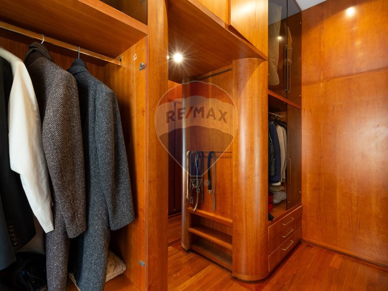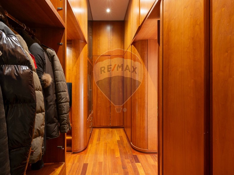 La zona notte comprende quattro camere matrimoniali e tre bagni. Laccesso alla suite padronale avviene tramite una cabina armadio rivestita in boiserie in essenza ciliegio, che introduce alla camera da letto di 30 mq e al bagno doppio con vasca e doccia.