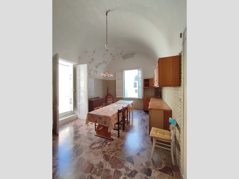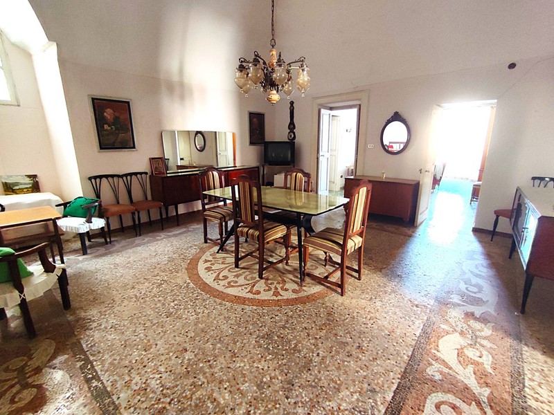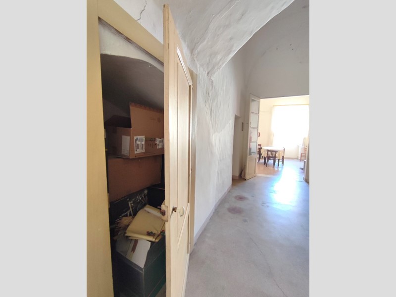 Varcando la soglia, si è accolti da un ampio soggiorno che si affaccia sulla via principale, cuore vivo del centro storico, dove la luce del pomeriggio entra generosa dalle finestre e accarezza le pareti antiche. A seguire, una grande sala da vivere, perfetta per momenti conviviali e serate dedicate alla quiete e alla bellezza.