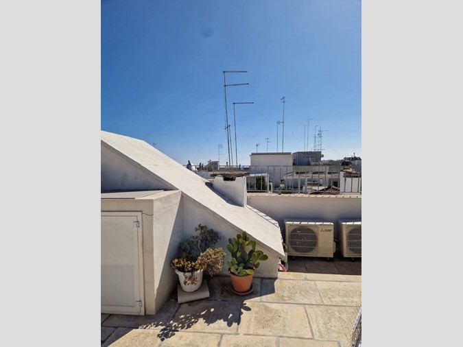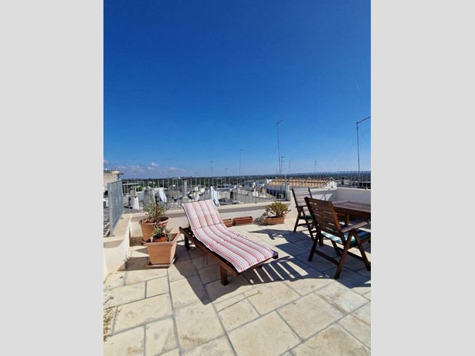 L'abitazione si compone di piccolo living con divano letto e cucina a vista dotata di lavastoviglie, ampia camera da letto con angolo studio, bagno con doccia, 2 balconi ed un ampio e meraviglioso terrazzo di copertrura (chianche Cursi) atterezzato con tavolo e sdraio. Ambienti climatizzati caldo/freddo. Nel canone sono incluse le spese per le pulizie settimanali.