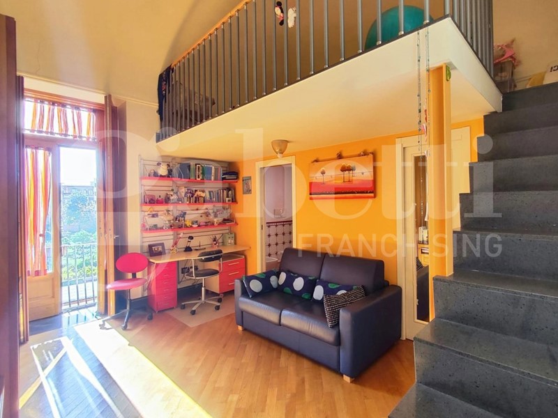 ampio ingresso di rappresentanza, salone living con doppio punto luce, studio con zona archivio, tre camere da letto, di cui due con soppalco e cabina armadio, tre bagni e vani guardaroba, lavanderia/ripostigli distribuiti tra i vari ambienti.