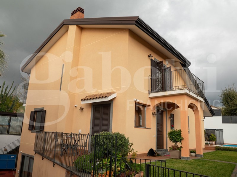 Prestigiosa Villa Singola con piscina all'interno del comune di Aci Bonaccorsi (CT). Classe Energetica A. La Villa pur godendo di una Privacy assoluta ha un'ottima posizione Centrale in via Calcara di Aci Bonaccorsi, inoltre dista a pochissimi minuti da uno dei più noti Centri Commerciali " Le Zagare" e a due passi dalla tangenziale dove si possono facilmente raggiungere diverse località come Catania, Messina, Palermo ecc.. . Ogni elemento di questa proprietà vi stupirà per le sue ottime rifiniture, sia interne che esterne, Gli ambienti presentano un equilibrio di grande armonia e donano a questo magnifico immobile una grazia e una bellezza unica. Lo spazio esterno oltre ad essere dotato di piante ornamentali ben curate dispone anche di una invidiabile piscina con impianto di ultima generazione dotata di impianto elettrico elettrolitica e inverter, impianto utile sia per riscaldare la temperatura dell'acqua e per monitorare il corretto funzionamento del sistema, sarà fantastico trascorrere in sicurezza e nella propria riservatezza, momenti di tranquillità e di svago in questa stupenda proprietà. La Villa si dispone su tre livelli, la superficie interna e di circa 261mq circa, mentre quella esterna e di circa 400 mq. Varcata la soglia di ingresso possiamo notare la particolarità degli ambienti e delle rifiniture ricercate, al fine di rendere gli ambienti unici e di grande bellezza. La pavimentazione del piano terra è rivestita da pavimenti gres porcellanato 90x90 marca " Marazzi" Tutti i piano della Villa sono caratterizzati da porte laccate bianche della marca Filomuro Garofoli. Il Piano Primo è rivestito con pavimentazione con parquet. La Villa è predisposta anche per due nuclei familiari. A completare questa strepitosa proprietà è un garage di circa 25 mq. codice rif. DR001. Per prenotare una visita contatta il 3924852233 oppure invia un messg. WhatsApp. Sarai ricontattato dal nostro consulente addetto alla vendita.