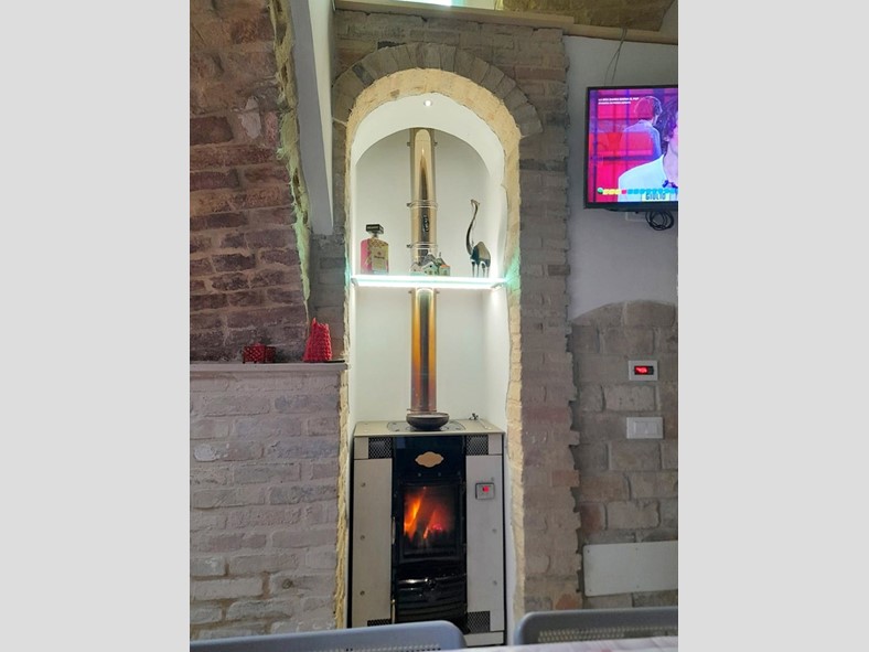 Il bagno ristrutturato con cura garantisce comfort e funzionalità, mentre la caratteristica stufa assicura un clima sempre piacevole.