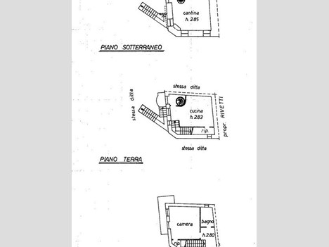 La prima parte d'immobile offre al piano terra una tavernetta con camino, al primo piano una cucina con ripostiglio e una camera da letto, al piano secondo invece è presente un ulteriore camera da letto, un bagno e due balconi; il tutto collegato tramite la scala interna.