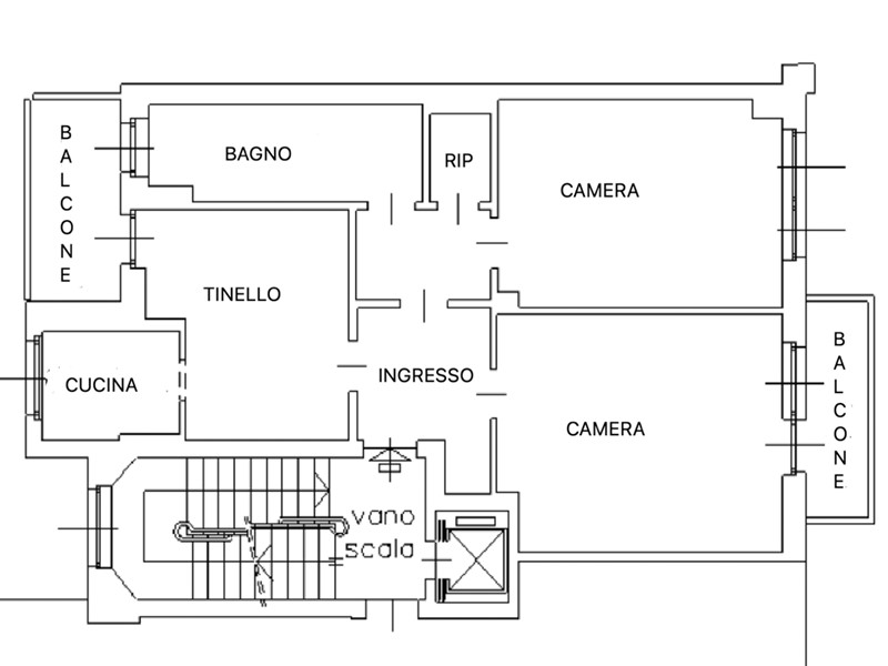ingresso, due camere luminose, cucina abitabile con terrazzino, bagno finestrato, ripostiglio, balcone e cantina di pertinenza la piano interrato.