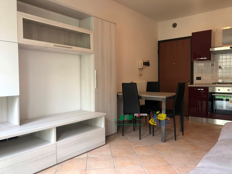 L'immobile è completamente arredato ed è cosi composto: soggiorno con angolo cottura, disimpegno, ripostiglio, bagno, camera matrimoniale, cantina e posto auto coperto in garage condominiale.