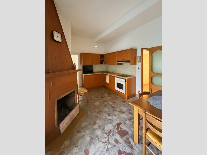 cucina abitabile con ripostiglio e accesso a un terrazzino,