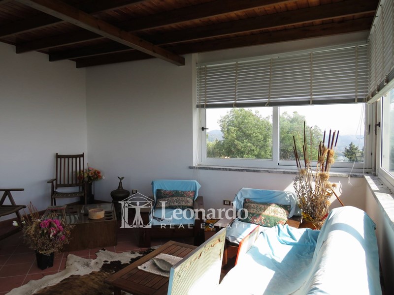 In un'area riservata di proprietà che si estende su 17.000 mq di terreno collinare con intorno un ampio giardino pianeggiante, si sviluppa un'abitazione qualitativamente curata e con spazi di respiro. Ogni ambiente si apre sul panorama verso il mare e regala un gioco di finestre che valorizzano gli ambienti.