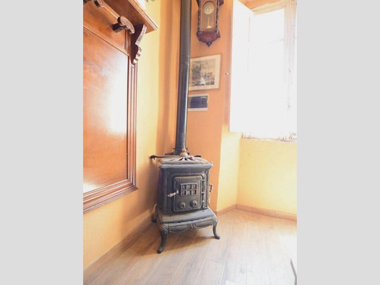 L'intero immobile è rifinito nei dettagli, mantenendo lo stile antico della struttura con travi e infissi in legno. Il riscaldamento è garantito da camini e stufe, una a legna e l'altra a pellet, presenti su ogni livello della casa.