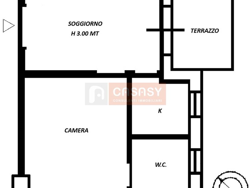 E' composto da: ingresso, ampio soggiorno con cucinino finestrato, camera da letto e bagno con finestra. La terrazza è vivibile e dotata di tenda da sole.