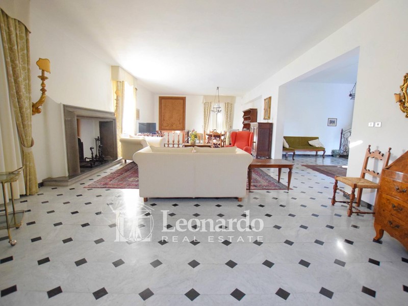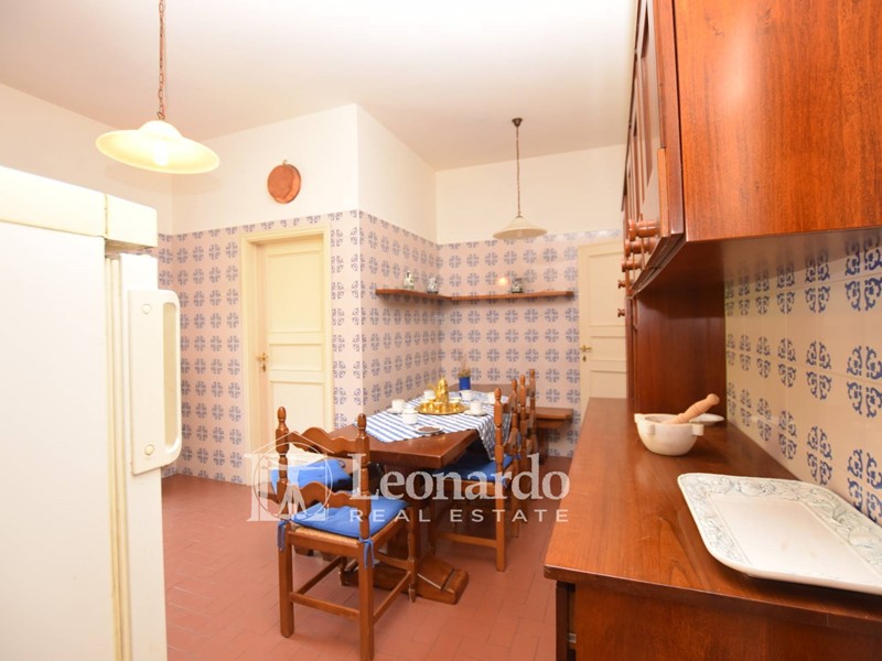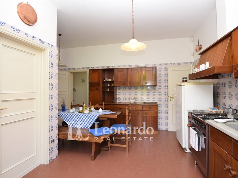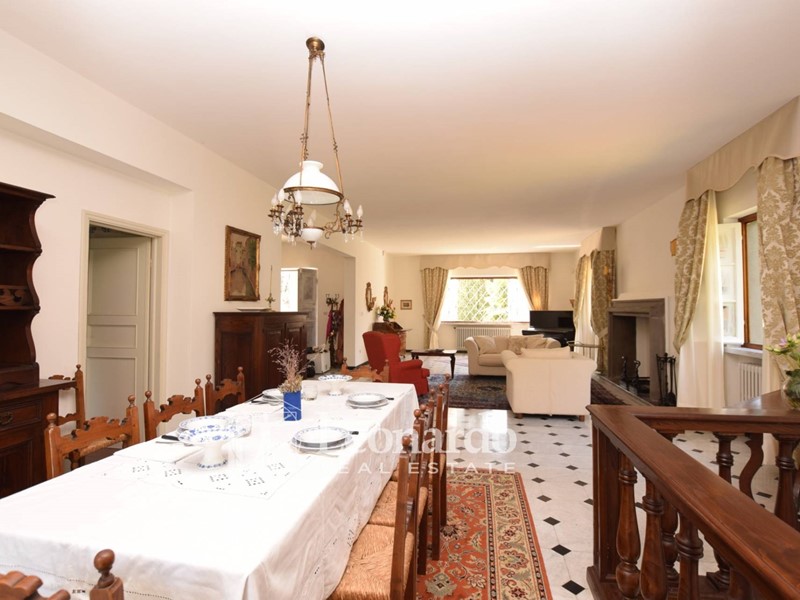 Il piano terra di circa 270 mq ci accoglie nel grande salone doppio con camino seicentesco, e zona tinello per proseguire verso una cucina abitabile collegata con una grande dispensa e con il garage..