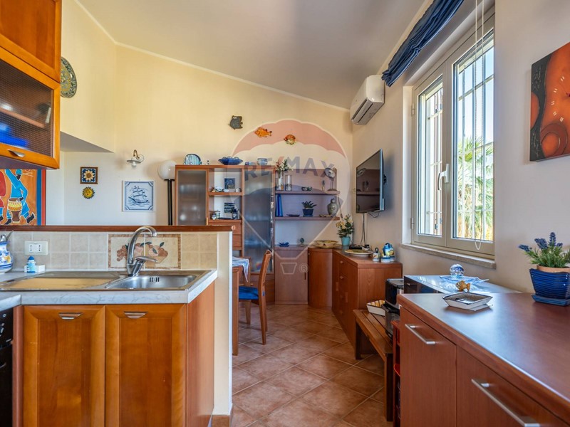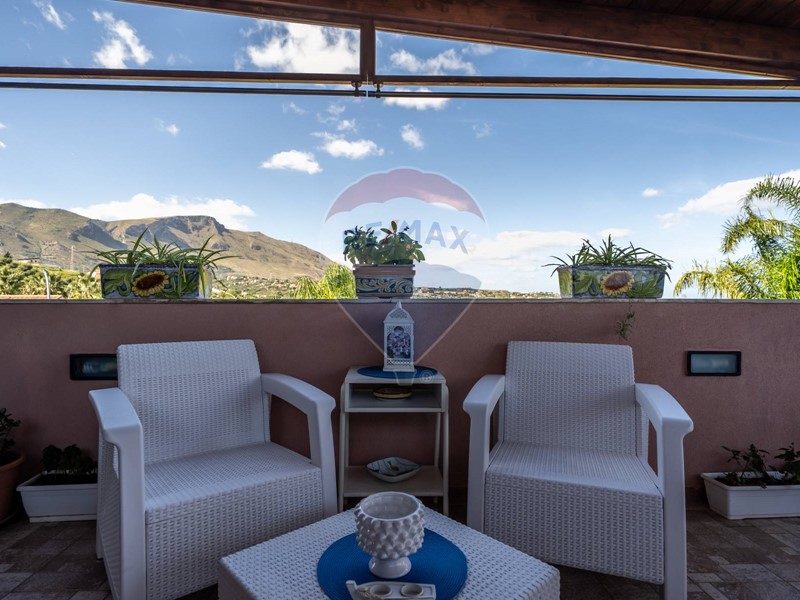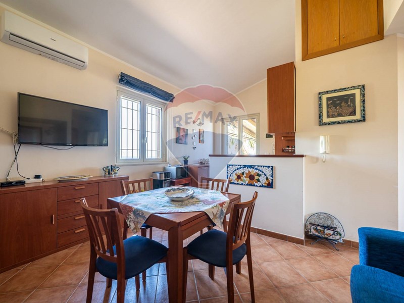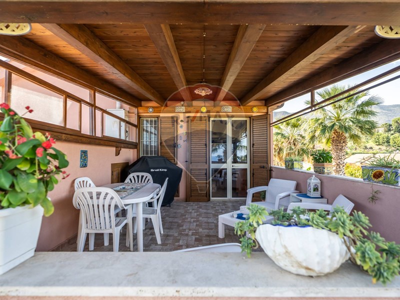 Nella splendida cornice della costa siciliana e precisamente tra Trabia e San Nicola LArena in Contrada Sant'Onofrio, all'interno dell'elegante Residence Acquamarina, proponiamo la vendita di una interessante porzione di villa di mq.60 con corte esclusiva di circa mq.700 ben curata. La proprietà è così distribuita: dal cancello di accesso alla corte esclusiva si arriva alla scala che ci porta all'ampio terrazzo coperto dove troviamo l'ingresso dell'abitazione, qui ci accoglie una cucina a vista con comodo living, un piccolo disimpegno ci conduce alla zona notte composta da due camere servite da un servizio con doccia finestrato. L'ampia terrazza coperta consente di godere di panorami suggestivi e mozzafiato, dai caldi tramonti estivi alla vista delle isole eolie. Il meraviglioso giardino curato e terrazzato di circa 700 mq. regala piacevoli momenti di relax e consente anche linstallazione di una piscina fuori terra ad uso esclusivo. La proprietà è dotata di caldaia a gas per l'acqua sanitaria e per la cucina, infissi interni in pvc con vetrocamera, zanzariere, persiane esterne in pvc, ripostigli soppalcati, climatizzatori, arredi esterni sia per il terrazzo coperto che per il giardino ed infine funzionali ripostigli adiacenti al terrazzo. La villetta sarà venduta totalmente arredata pertanto sarà possibile utilizzarla immediatamente. Per ogni villetta è riservato un posto auto davanti all'accesso della villa plurifamiliare. Il residence Acquamarina si trova a circa 1,5 km. dal mare, è dotato di due ingressi, un lido a mare esclusivo per i residenti, un servizio gratuito di navetta per il periodo estivo, piscine per adulti e bambini, campo di calcetto, bar e animazione estiva . Per ulteriori informazioni o per pianificare una visita, vi chiediamo di contattarci.