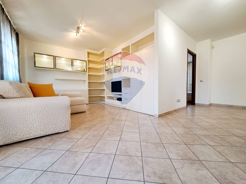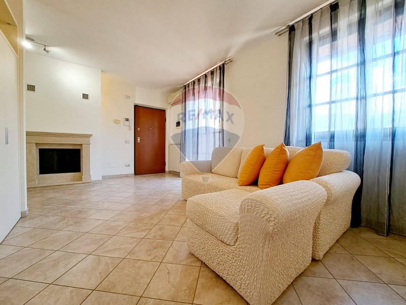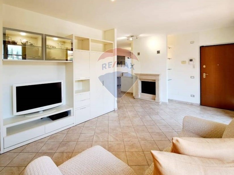 Appartamento al secondo piano con ascensore di circa 90 mq. composto da ingresso-soggiorno con termocamino - cucina con ampia terrazza, camera matrimoniale con bagno con vasca e doccia , altra camera con bagno con doccia . Garage al piano seminterrato con accesso direttamente dall'ascensore .