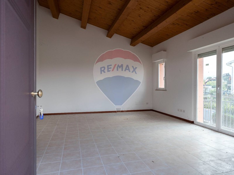 Appartamento al primo piano composto da ingresso su soggiorno con angolo cottura con terrazzino, 1 camera matrimoniale e 1 camera con balcone, bagno, disimpegno e ripostiglio. Soffitto con travi a vista di altezza media 3,12 mq e si distingue per la luminosità, gli spazi aperti e l'ariosità. Completano la soluzione un garage e un orto.