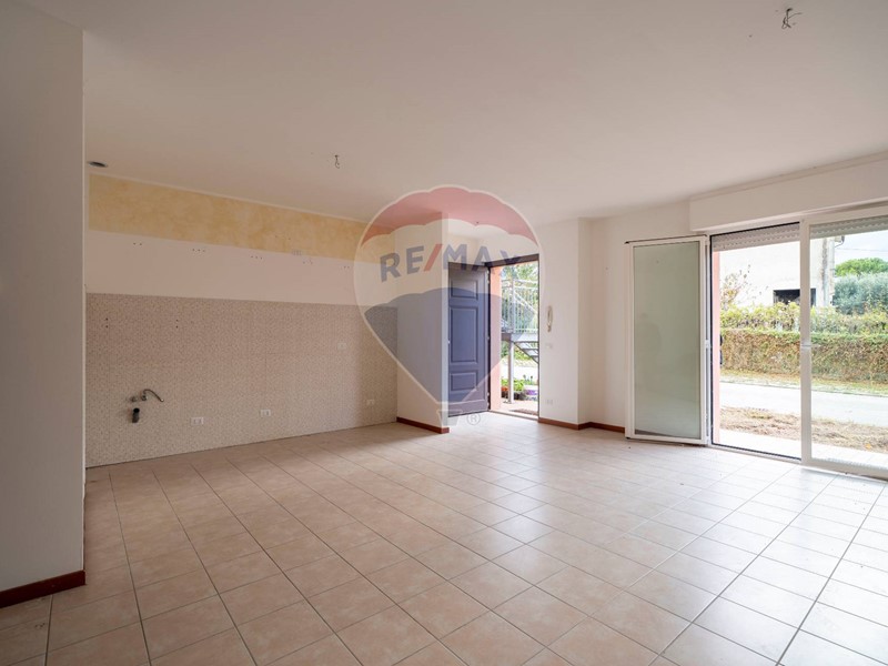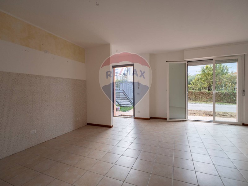 Appartamento al piano terra composto da ingresso sul soggiorno con angolo cottura, camera matrimoniale con balcone, camera singola e bagno, disimpegno e ripostiglio. Corte esclusiva con accesso diretto dal soggiorno. Completa la soluzione un garage e un orto.