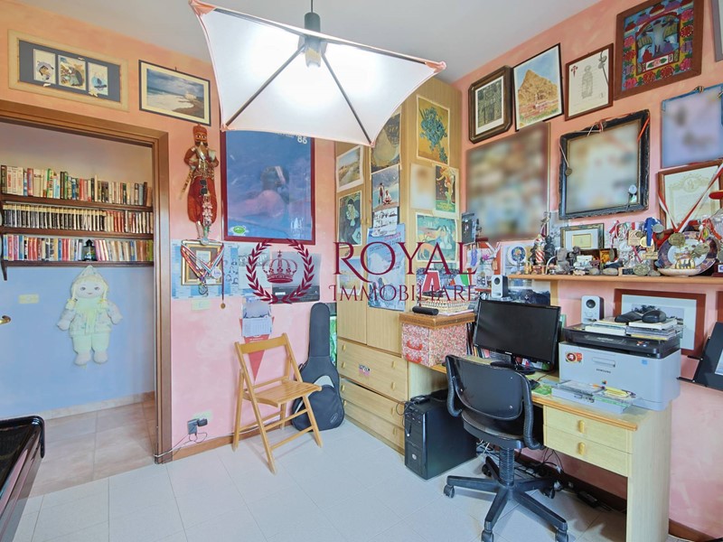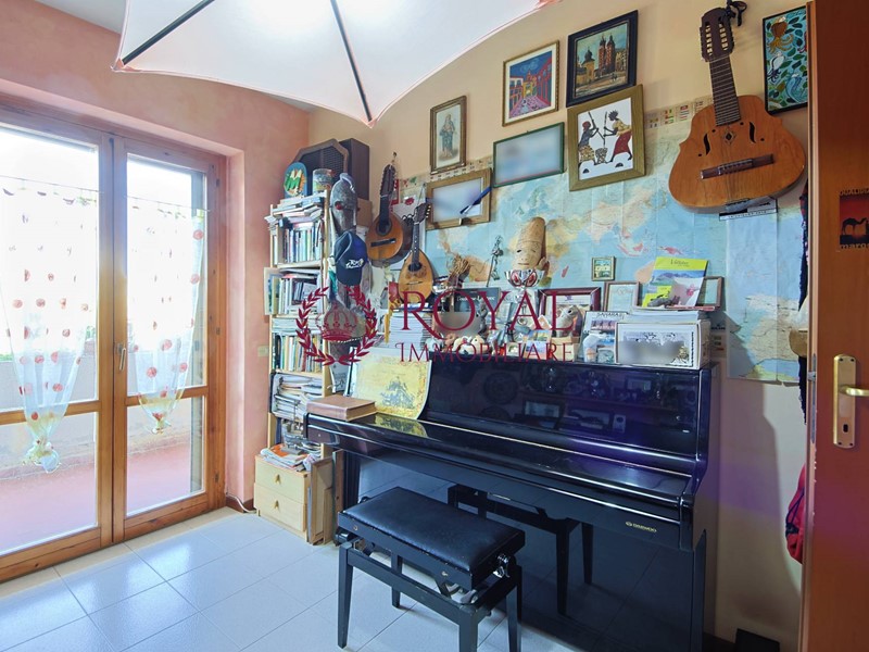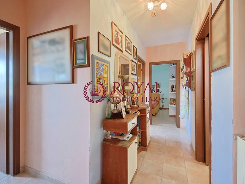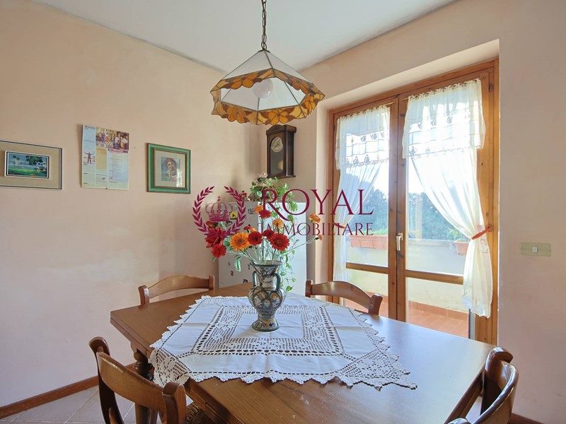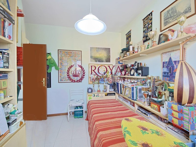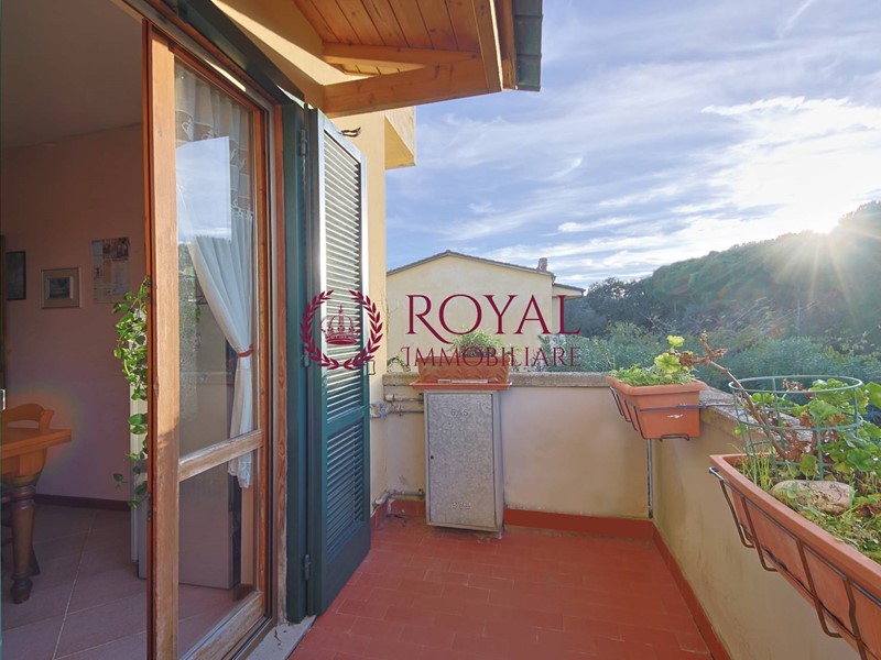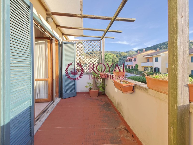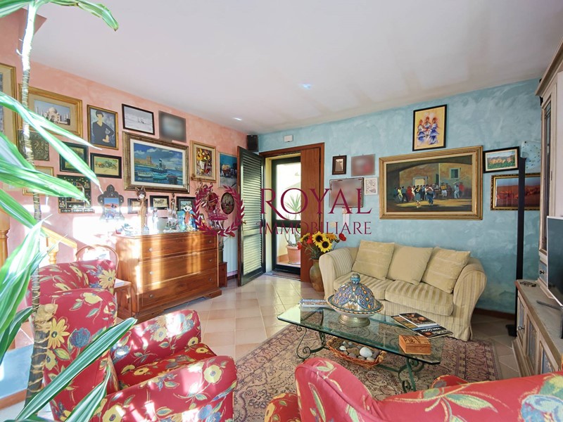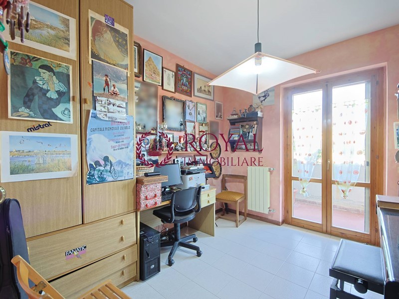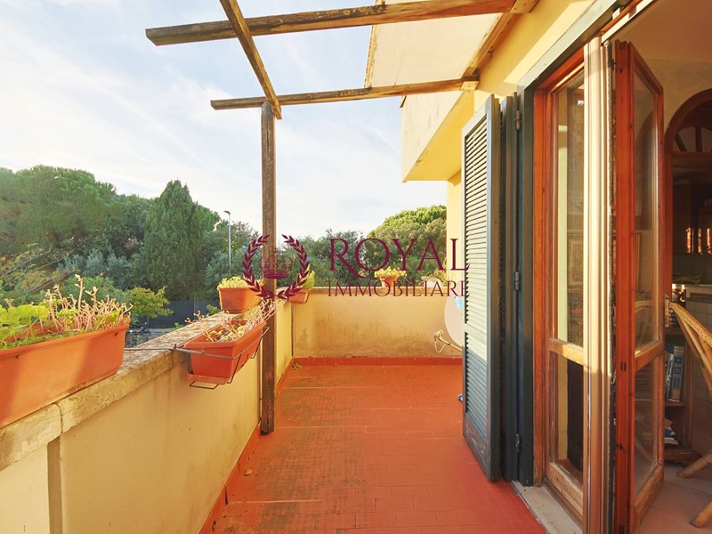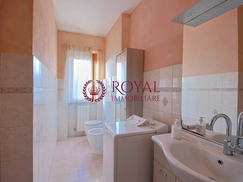 La cucina è separata e completamente attrezzata, con accesso diretto a un delizioso patio esterno, perfetto per gustare i pasti all'aperto nelle giornate più calde, comoda scale per accedere al piano notte dove troviamo tre camere da letto, altro terrazzo, due bagni. Scala per andare al terrazzo superiore di circa 50 metri quadrati con vista mare, ripostiglio, ottima esposizione. Termo autonomo. Completa la proprietà un garage. Posto auto coperto. Cantina.
