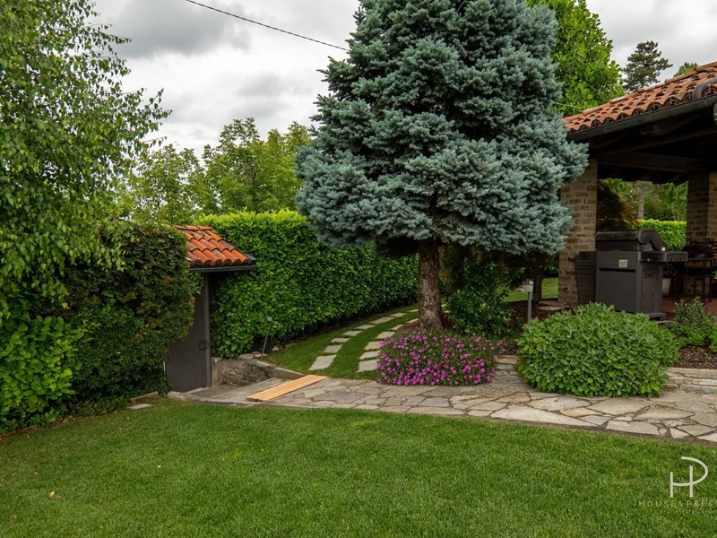 Questa proprietà, libera su quattro lati, si sviluppa su tre livelli per un totale di 240 mq interni, circondata da 900 mq di giardino privato.