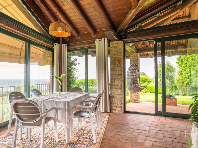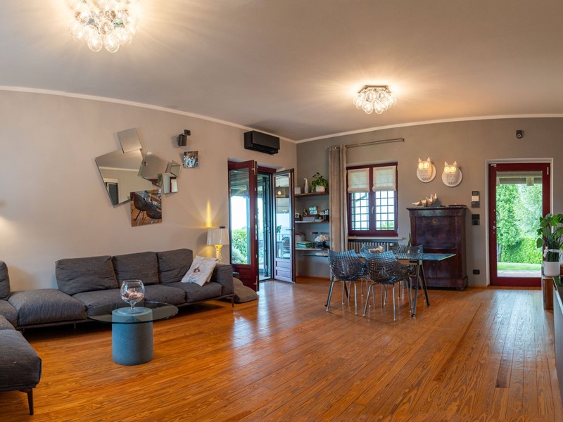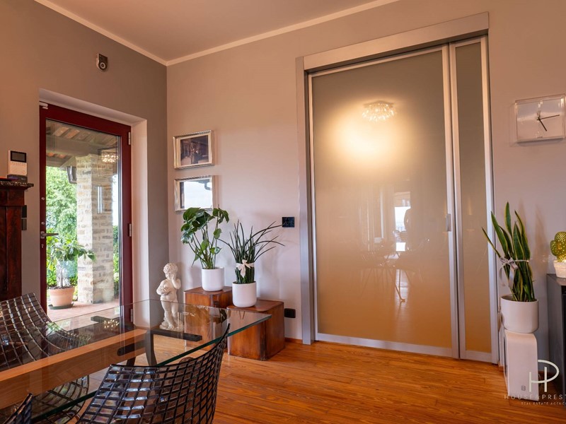 Lingresso introduce in un salone doppio elegante e luminoso, dove ogni spazio è studiato per accogliere con stile. La cucina abitabile è perfetta per chi ama la convivialità, mentre la veranda con termoconvettore regala uno spazio intimo e suggestivo con unincantevole vista sui vigneti e sul Monviso, che nei giorni limpidi si staglia allorizzonte con tutta la sua imponenza. Ogni tramonto da qui è uno spettacolo da vivere in silenzio.