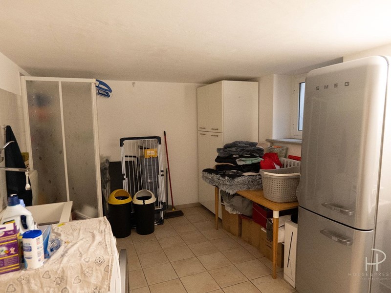 Il piano interrato completa lofferta con un box auto, una lavanderia, un magazzino, un bagno di servizio, un locale caldaia e uno spazio sottoscala.