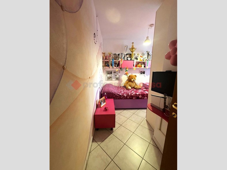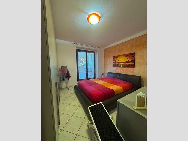 La zona notte comprende tre camere da letto, tutte con accesso diretto alla grande terrazza: una matrimoniale, una media e una singola. Sono presenti due bagni, uno finestrato con doccia e l'altro senza finestra e con vasca.