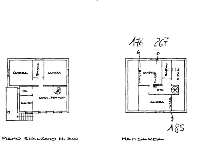 Salendo tramite una scala interna si sala al primo piano dove troviamo altre due camere da letto e il secondo bagno.