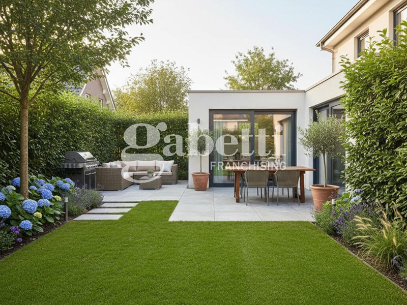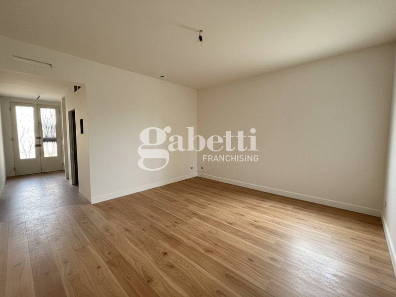 Trilocale con ingresso indipendente, due resede, giardino privato e taverna in villa bifamiliare.