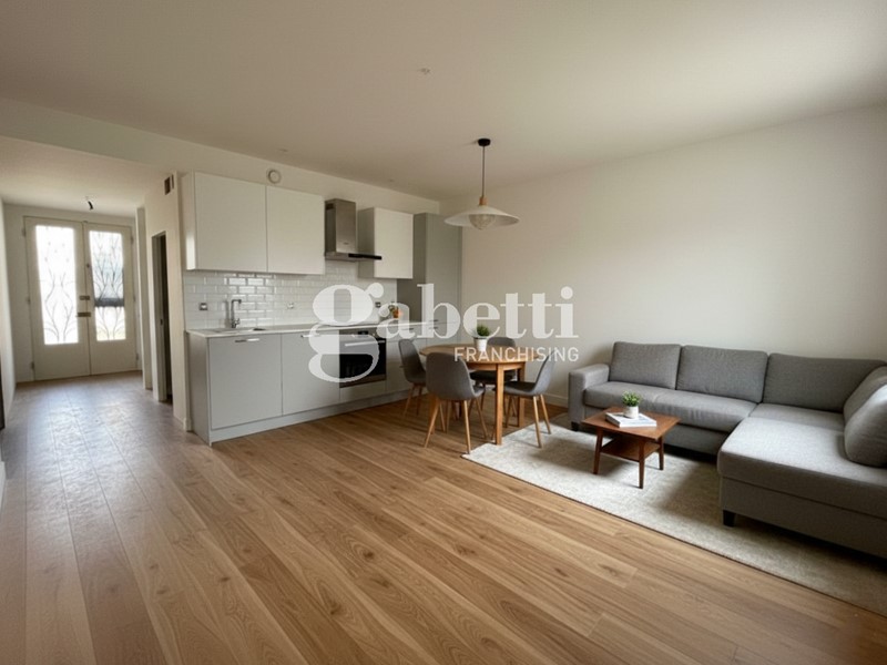 In zona tranquilla e riservata, trilocale di nuova costruzione posto al piano terra di una villa bifamiliare, dotato di ingresso indipendente e ampi spazi esterni di proprietà esclusiva. L'immobile si compone di luminoso soggiorno con angolo cottura, due camere matrimoniali (una delle quali con bagno privato finestrato e doccia) e secondo servizio. La zona giorno affaccia su un resede tergale di circa 46 mq, perfetto per pranzi all'aperto o momenti di relax, mentre l'accesso principale all'immobile avviene tramite resede frontale di circa 30 mq, corredato da loggia coperta. Completano la proprietà un giardino privato di 75 mq e una taverna di circa 28 mq collegata tramite scala esterna; ambiente versatile e ben rifinito, ideale come zona hobby, studio o locale di servizio. Soluzione ideale per chi desidera indipendenza, comfort e spazi esterni vivibili, in un contesto residenziale tranquillo ma vicino ai principali servizi.