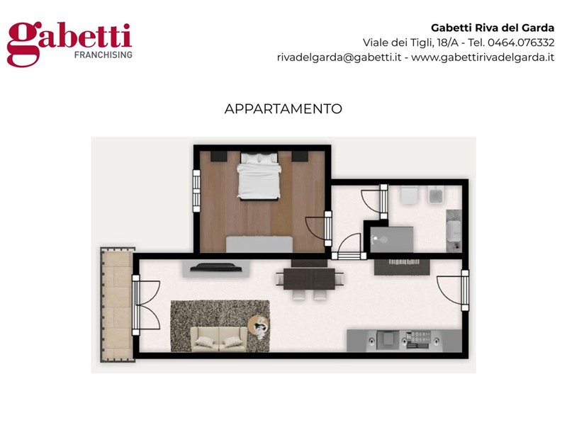 L'appartamento, posto al primo piano, si distingue per l'ottima esposizione e la luminosità degli ambienti. L'ingresso si apre su una zona giorno confortevole con cucina ad angolo cottura, perfettamente integrata al soggiorno, ideale per trascorrere momenti di relax o convivialità. Un corridoio conduce alla stanza matrimoniale, spaziosa e ben illuminata, e al bagno con cabina doccia. Dalla zona giorno si accede al balcone esposto a sud, dal quale si può godere di una splendida vista aperta sulle montagne e sul paesaggio circostante.