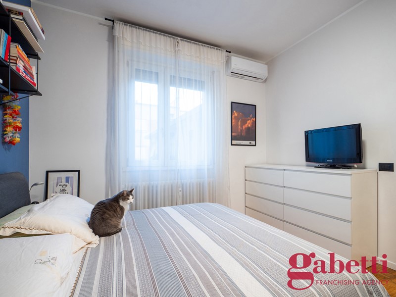 In contesto residenziale tranquillo, all'interno di una palazzina di edilizia civile degli anni Sessanta, proponiamo bilocale posto al secondo piano (senza ascensore), caratterizzato da doppia esposizione silenziosa sul piccolo cortile condominiale.