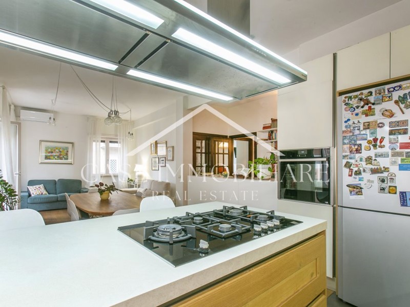 La CASE Immobiliare VENDE in esclusiva, un luminosissimo appartamento con balcone, adiacente a via Sacchetti, Via della Bufalotta e al Viadotto Giovanni Gronchi, precisamente in Via\nPanzini nel cuore di Talenti. La zona è tra le più richieste di Roma per vivibilità e comodità: nelle immediate vicinanze si trovano negozi, supermercati, scuole, aree verdi, mezzi pubblici e tutti i principali servizi, rendendo questa soluzione ideale per chi desidera vivere in un contesto funzionale e perfettamente collegato con il resto della città.\nL'edificio, edificato negli anni '60, si distingue per la sua architettura sobria e ben mantenuta, ed è dotato di ascensore. La posizione arretrata rispetto alla strada principale e l'accesso da strada privata, garantiscono un'atmosfera di tranquillità e riservatezza, rara in zona. La palazzina, inoltre, è stata recentemente ristrutturata esternamente e oggi si presenta in ottime condizioni.\nL'appartamento, di circa 100 mq, è posto al terzo piano di una palazzina di cinque. L'ingresso ci conduce direttamente alla zona giorno, un ambiente arioso e moderno dove la luce naturale filtra generosa grazie alle ampie finestre e alla doppia uscita sui balconi. La cucina di design a vista, completa di isola all'americana, dialoga armoniosamente con la zona living, creando un open space elegante e conviviale, perfetto per ospitare amici o rilassarsi in famiglia. Di fronte all'ingresso è stata realizzata una capiente cappottiera su misura, discreta e funzionale, mentre un comodo disimpegno conduce alla zona notte. Quest'ultima si apre su una camera padronale matrimoniale dal carattere elegante e accogliente, dotata di ampia cabina armadio e di un piccolo bagno privato en suite (attualmente adibito a ripostiglio). Segue una seconda camera con balconcino privato, ideale come camera per ragazzi, studio o stanza per gli ospiti. A completare la zona, in posizione centrale tra le due camere, un ampio bagno finestrato con maxi doccia. Ristrutturato completamente nel 2011, il trilocale si presenta in ottime condizioni. Porta blindata, riscaldamento centralizzato a metano con caldaia nuova (sostituita nel luglio 2025), ascensore, infissi in pvc, aria condizionata, serrande elettriche. Completa la proprietà un garage di pertinenza, di complessivi 17 mq, ubicato a poca distanza, precisamente nell'autorimessa di via Sacchetti. Un'opportunità unica per chi desidera un appartamento chiavi in mano, moderno, luminoso e curato in ogni dettaglio, in una delle zone più apprezzate e ricercate di Roma, dove comfort, eleganza e qualità della vita si incontrano in perfetto equilibrio.\nLe presenti informazioni e planimetrie sono meramente indicative e non costituiscono elementi contrattuali. Per info e appuntamento contattare i ns uffici. La nostra agenzia CaSe immobiliare in via Tuscania 13, zona Flaminia/Fleming, è a vs disposizione per assistervi nella VENDITA-AFFITTO di immobili residenziali e commerciali.\nI nostri servizi: VALUTAZIONE GRATUITA - COMPRAVENDITE - LOCAZIONE - REGISTRAZIONE CONTRATTI E PRELIMINARI - APE (certificazione energetica) - CONSULENZA NOTARILE, LEGALE e TECNICA - Maggiori Dettagli: Porta blindata