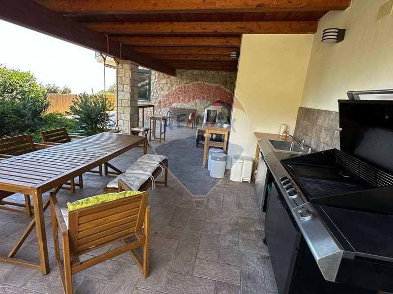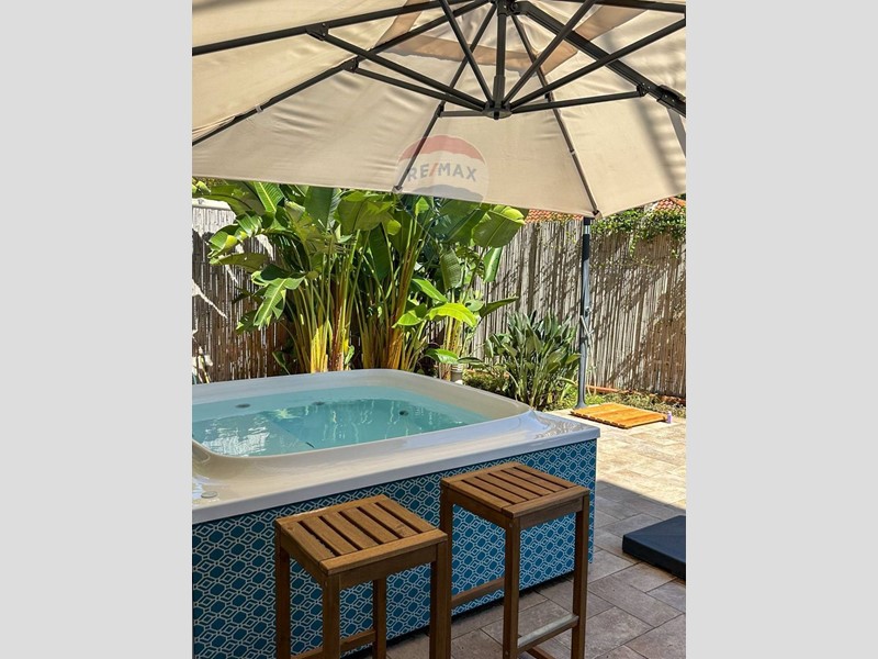 Allesterno, un ampio e meraviglioso giardino che accoglie una splendida zona relax con jacuzzi privata, doccia esterna e area focolare con vista mare e la zona living che è pensata per vivere momenti di convivialità allaperto: un grande tavolo per cene in famiglia o con amici, area barbecue con cucina professionale Dolce Vita.