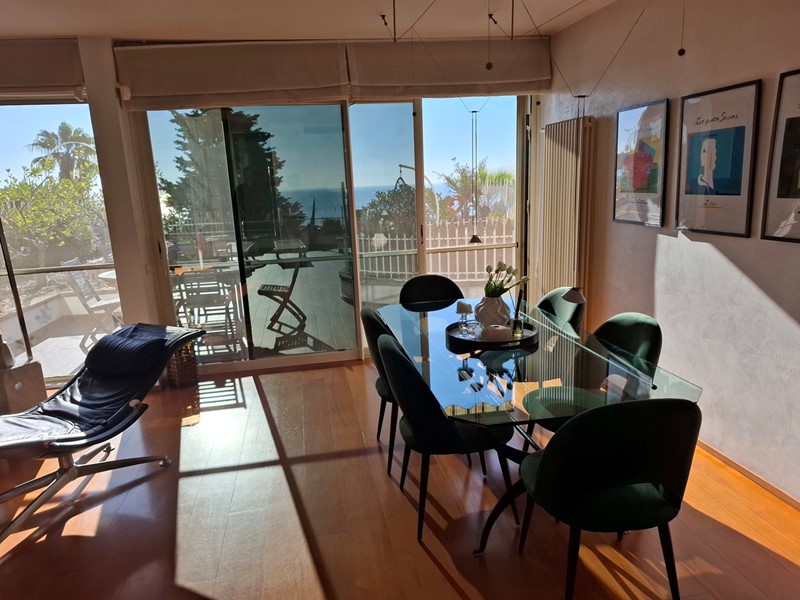 Immagina di vivere in un luogo dove il profumo del mare e la brezza leggera diventano parte della quotidianità. Proponiamo in vendita un prestigioso quadrilocale che offre tutto questo e molto di più. Situato in un contesto signorile, immerso nel verde di un parco alberato, questo immobile è l'ideale per chi cerca tranquillità e serenità senza rinunciare al comfort. Questa splendida abitazione si distingue per la sua ampia metratura e per la sapiente disposizione degli spazi interni ed esterni. L'appartamento è composto da un luminoso salone doppio, perfetto per accogliere amici e familiari, una cucinotta funzionale, un'accogliente camere da letto e due bagni moderni. Ancora una comoda cabina armadio e un grande terrazzo che si affaccia sul giardino privato, creando un ambiente ideale per godere momenti di relax. Inoltre il salone, un tempo suddiviso, grazie ad una semplice parete divisoria, può facilmente trasformarsi in una seconda camera da letto, offrendo così maggiore spazio per soddisfare ogni esigenza. (Planimetria 2). Il giardino, arricchito da una vista mare spettacolare, è dotato di zone dedicate al sole, un'area barbecue perfetta per le cene estive e uno spazio ombreggiato adibito a zona pranzo, dove gustare i pasti immersi nella natura, ascoltando il dolce suono delle onde. Il complesso residenziale è dotato di una piscina con vista mare che invita a rinfrescarsi durante le calde giornate estive, mentre le zone di relax immerse nella vegetazione offrono momenti di pace e contemplazione. Questo immobile è perfetto per chi cerca un'abitazione da vivere tutto l'anno, ma è anche la scelta ideale per chi desidera investire in una seconda casa o un'opzione di reddito attraverso affitti turistici. La posizione è strategica: a soli 2 km dal mare e ben collegato dai mezzi pubblici che fermano direttamente davanti all'ingresso del condominio. L'accesso autostradale è a breve distanza, rendendo facile esplorare le meraviglie della Liguria di Ponente, la splendida Costa Azzurra, Montecarlo e l'aeroporto di Nizza. Disponibili vari box auto al prezzo di 35.000 euro ciascuno per garantire anche il massimo della comodità.