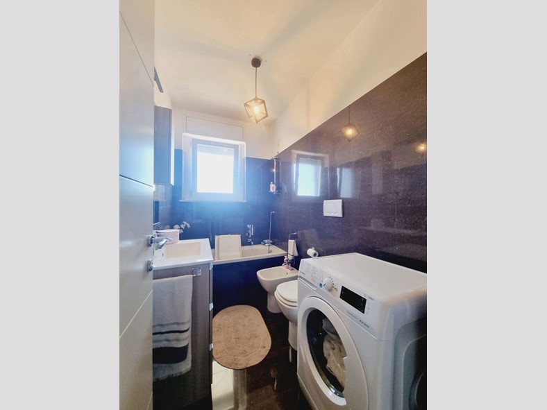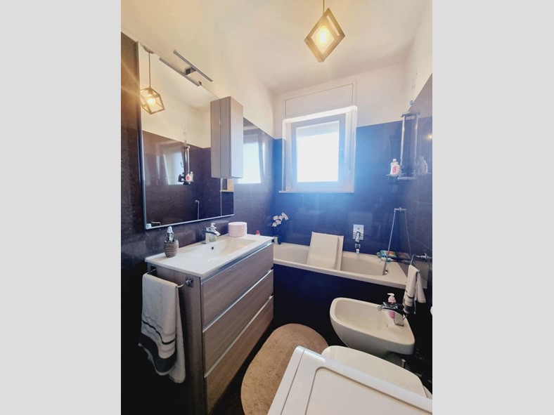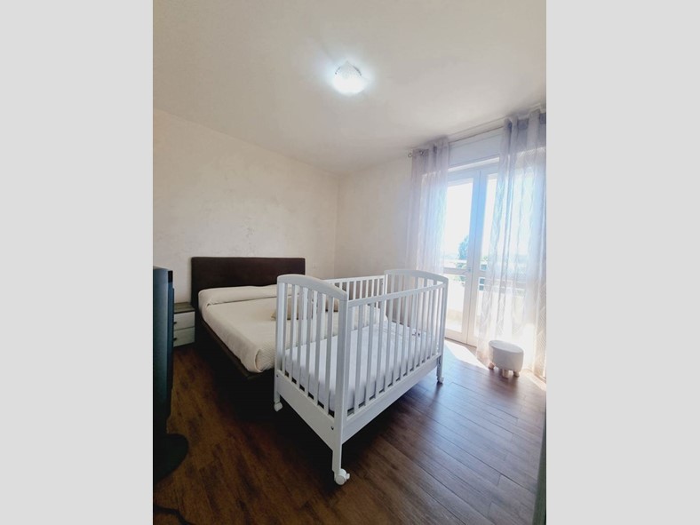 La zona notte è composta da camera matrimoniale e cameretta ,due bagni uno con vasca e finestra, l'altro cieco con box doccia. Completano la proprietà un