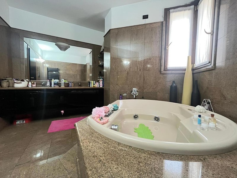 La zona notte si compone di una camera matrimoniale, una cameretta, un bagno padronale con vasca idromassaggio, vero angolo di benessere, e un secondo bagno sempre finestrato. A completare la zona notte, un pratico locale lavanderia e un comodo ripostiglio.