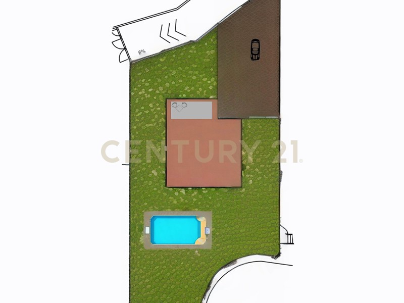 All’esterno, un portico di 19 mq, garage di 15 mq e un giardino di 800 mq circondano la casa, offrendo ampi spazi per vivere all’aperto e realizzare piscina o zona benessere.