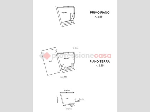 Piano terra (livello strada): 4 ampie vetrine/ingressi fronte strada, open-space luminoso, servizio igienico; perfetto per sala somministrazione, area vendita o accoglienza clienti.