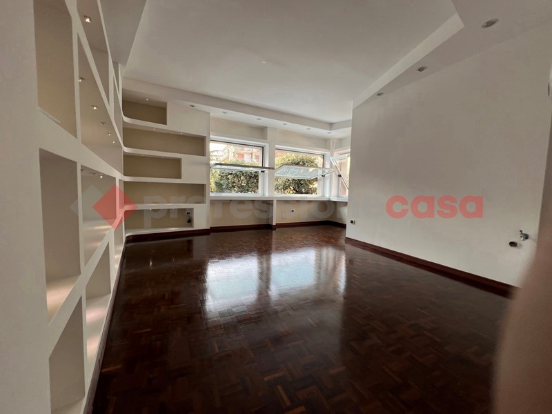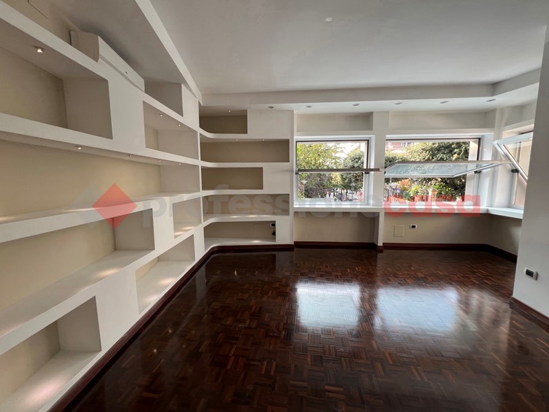 Primo piano: ambiente di rappresentanza rifinito con parquet, secondo servizio; adatto a sala ristorante, lounge, showroom o ufficio direzionale.