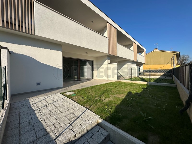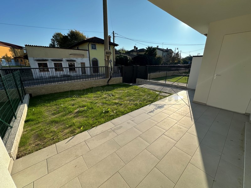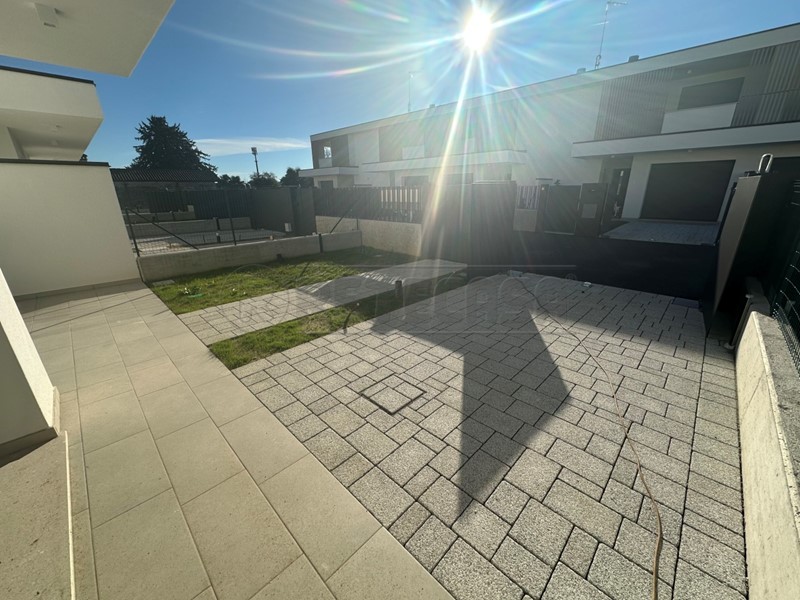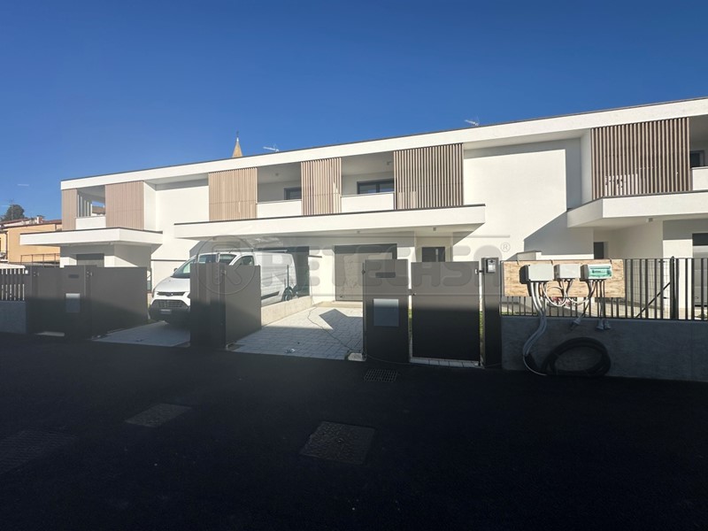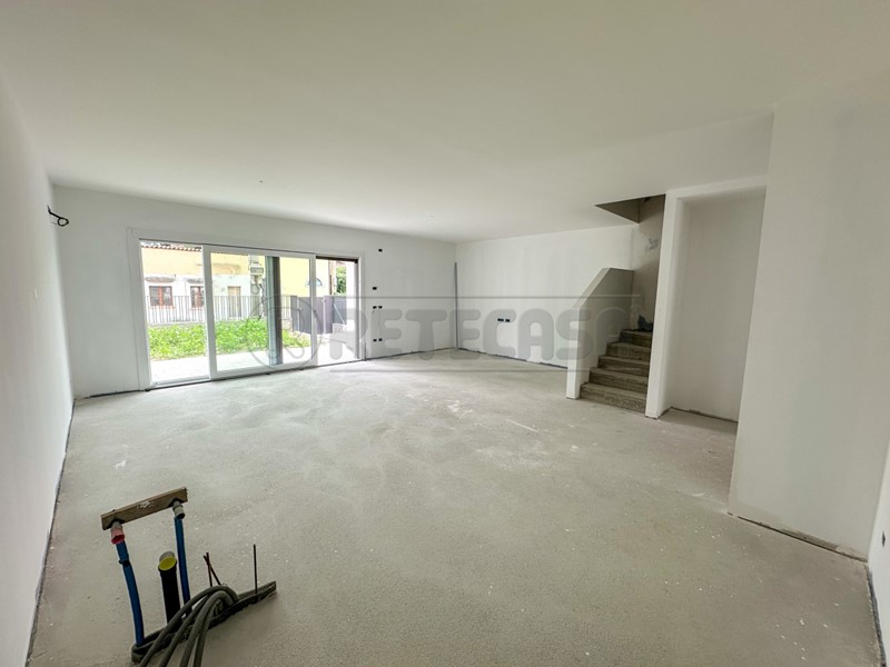 FIUMICELLO-VILLA VICENTINA: Sogni una casa nuova, moderna sotto l'aspetto energetico, ma anche progettuale e la vuoi anche subito? Abbiamo quello che fa per te!! A Fiumicello, proprio a due passi dalla chiesa di San Valentino e dalla Piazza del Municipio, ti proponiamo una villa a schiera ampia e luminosa, con una superficie di circa 185 mq commerciali distribuiti su due livelli, progettata con la massima cura per garantire un ambiente di vita sereno e confortevole. L'ingresso alla villetta, avviene tramite strada privata. La vettura può essere parcheggiata all'interno dell'autorimessa con basculante elettrico oppure lasciata esternamente, all'interno della proprietà. L'accesso pedonale conduce al grande soggiorno di forma regolare, con cucina progettata con isola centrale e uscita sul secondo giardino che offre la privacy necessaria. Al piano terra si trova anche il primo bagno completo e finestrato e un comodo ripostiglio. Il primo piano è progettato per garantire spazi comodi e ben organizzati, infatti non troverai da nessuna parte una casa nuova con tre camere matrimoniali e ben due ripostigli! Dalla matrimoniale si accede alla prima terrazza, leggermente più piccola rispetto a quella a servizio delle altre due camere. Il bagno è ambio e ben organizzato con una doccia spaziosa e moderna. Esternamente la proprietà è completamente recintata, con impianto di irrigazione automatico per mantenere rigoglioso il verde dei giardini. La pompa di calore e l'impiantistica di supporto per il fotovoltaico sono posizionati esternamente, in un vano dedicato, all'interno del quale si trovano anche gli attacchi per la lavatrice e l'asciugatrice. A lato del basculante del garage si trova anche, per chi è già dotato o sta pensando all'acquisto, la predisposizione per la colonnina di ricarica elettrica dell'autovettura. Classe energetica altissima, garantita dal sistema costruttivo Cllimablock della Pontarolo Engineering, con isolamento interno di 6cm, pareti dello spessore di 16cm, ulteriore isolamento esterno di 9cm e sottostante basamento dotato di intercapedine aerata. Il riscaldamento dell'immobile avviene tramite impianto radiante a pavimento con pompa di calore, affiancata ad un impianto fotovoltaico da 6 kW. La costruzione si contraddistingue anche per l'utilizzo di materiali pregiati e di finiture di alta qualità, insomma hai tutto quello di cui hai bisogno! Non aspettare oltre, chiamaci subito per fissare il tuo appuntamento, vivi il sogno della casa perfetta e scopri come il comfort e la tranquillità si fondono in un’esperienza unica! La descrizione dell’immobile, la planimetria riqualificata e le metrature riportate non costituiscono elementi contrattuali ma sono solo indicativi.