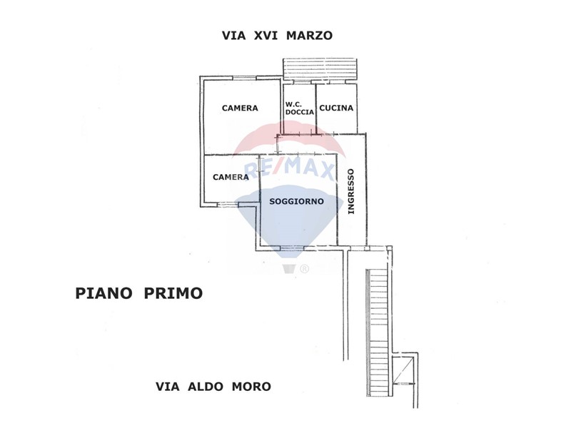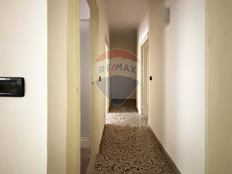 L'appartamento di mq. 77 è costituito da ingresso, un ampio soggiorno, due camere, cucina semi abitabile, bagno con doccia e balcone con affaccio su Via XVI Marzo.