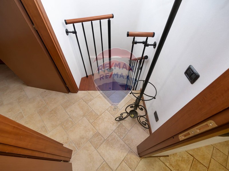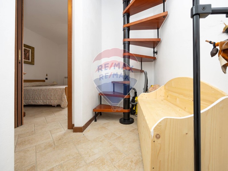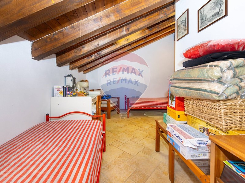 Il primo piano è dedicato alla zona notte, composta da una camera matrimoniale, un bagno finestrato e un disimpegno con accesso al piano superiore.