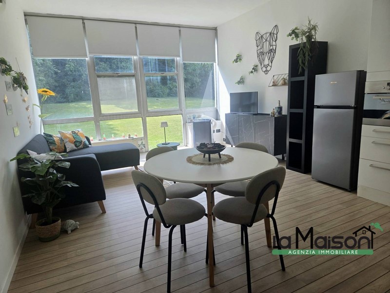 Si presenta composto da ingresso su soggiorno con cucina a vista, camera da letto, disimpegno e bagno.