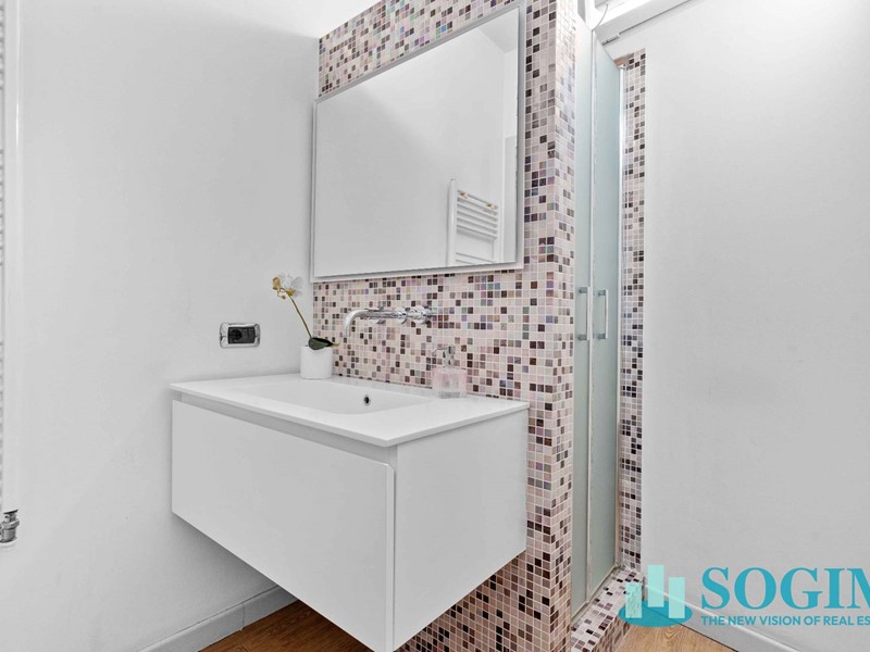 Dal disimpegno si accede alla zona notte dove sono presenti due comode camere, un bagno con doccia e un vano con armadiature.