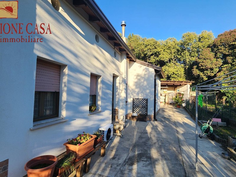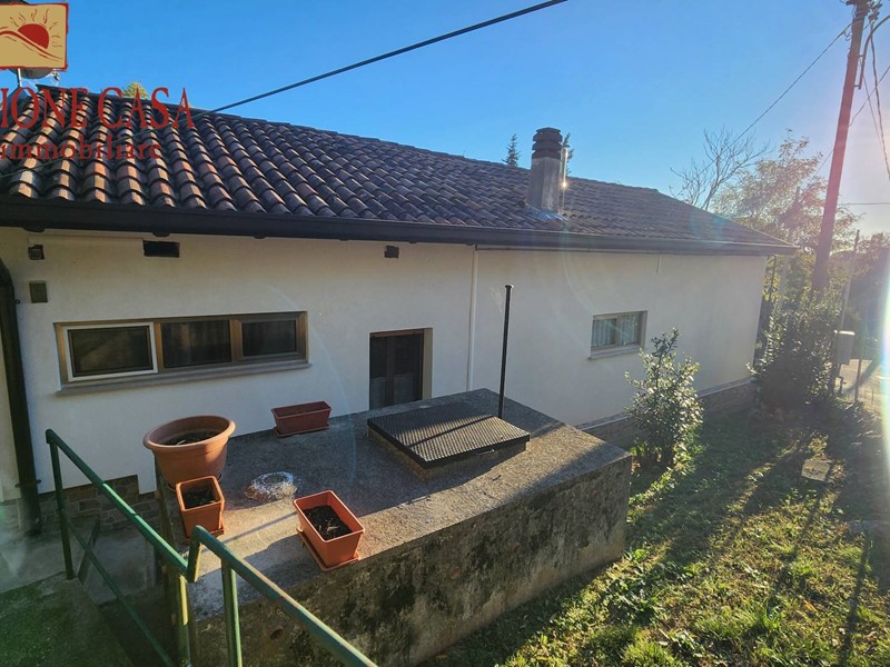 Redipuglia: lato carso.....luminosa villetta singola svolta su unico livello composta da ingresso, soggiorno, cucinotto con sala pranzo, disimpegno, camera matrimoniale, studio/camera, bagno...lavanderia esterna, rimessa, ampio sottotetto e scoperto cementato. Ottime condizioni con tetto ripassato di recente, cappotto, stufa a pellet, climatizzatore, pannelli solari. 158.000 trattabili (rif.1630)