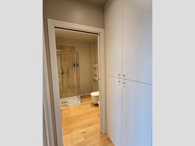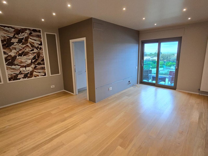 Le finiture, tutte di ottimo livello, includono pavimenti in parquet effetto rovere, porte interne bianche, parati decorativi e controsoffitti con illuminazione integrata.