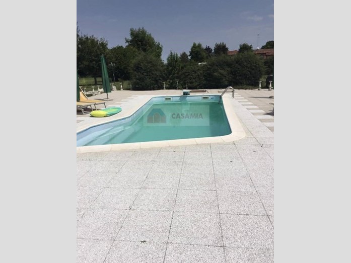 A completamento della proprietà troviamo un ampio scoperto con un altro magazzino ed una piscina.