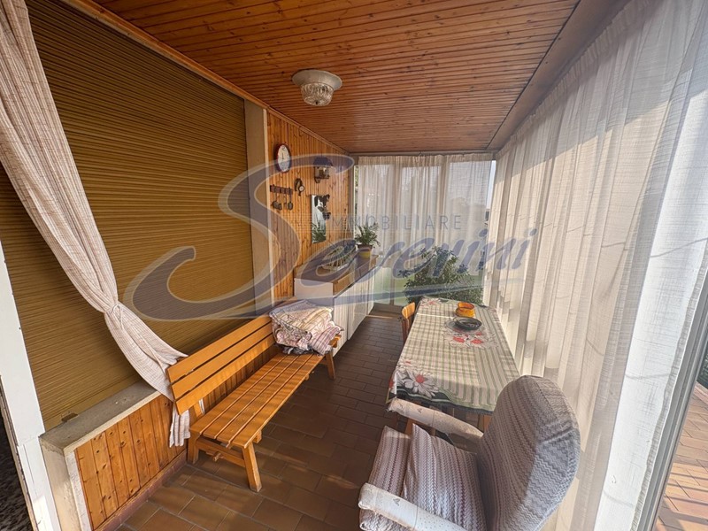 Soggiorno ampio e luminoso con accesso diretto al terrazzo, in parte verandato, ideale per godersi momenti di relax all'aperto.